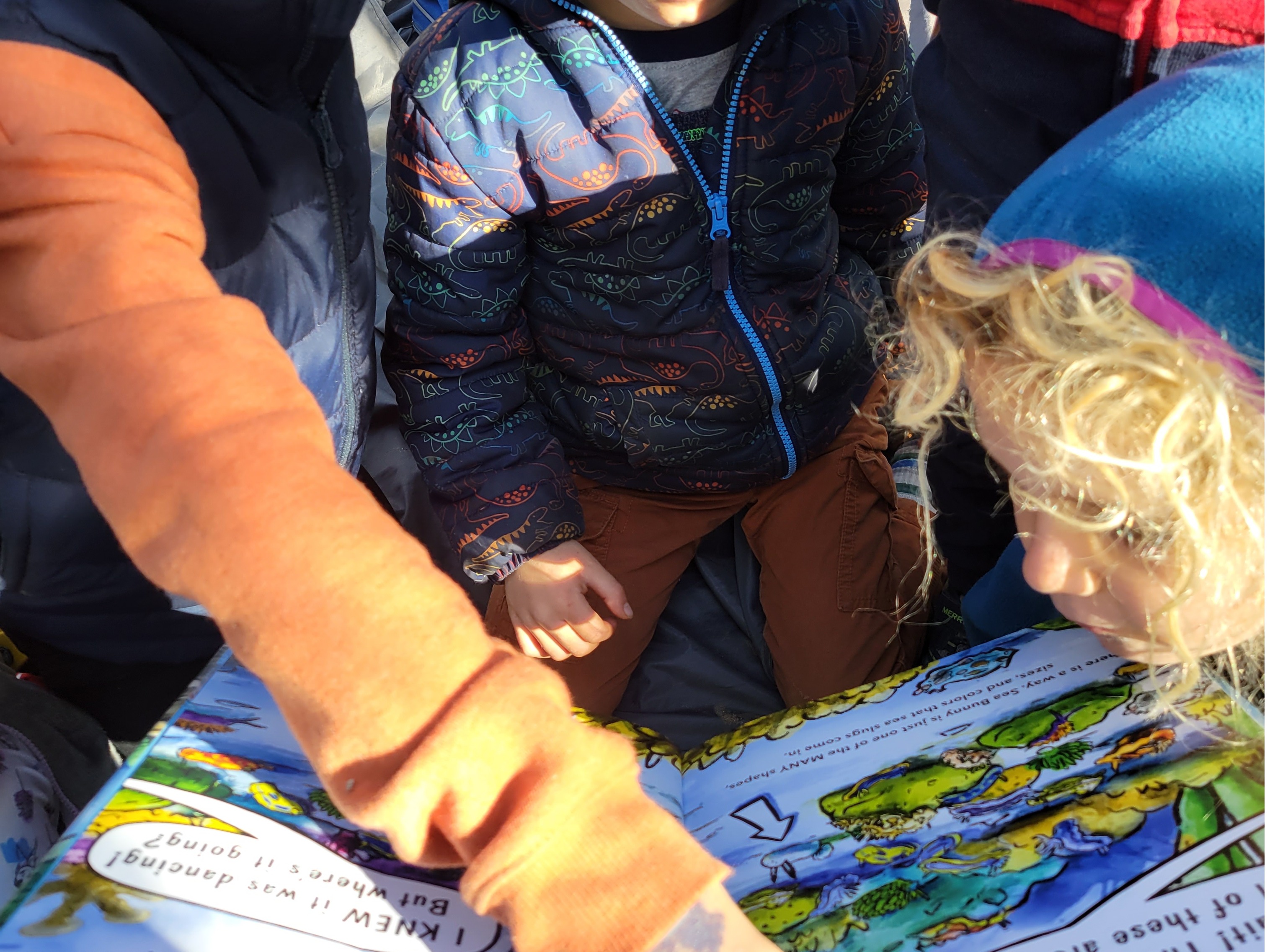 We gather as a learning community for a snack, shared reading and/or shared writing, daily news, and collaborative discussion. Whole-group exploration may include math, science, local history, or other interdisciplinary topics. A bathroom break supports independence and self-care.